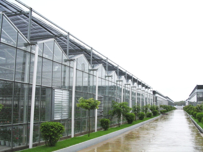 玻璃温室指以玻璃作采光材料的温室,属于温室大棚的一种 ,在栽培设施中,玻璃温室作为使用寿命较长的一种形式, 适合于多种地区和各种气候条件下使用。行业内以跨度与开间的尺寸大小分为不的建设型号,又以不同的使用方式分为:蔬菜玻璃温室、花卉玻璃温室、育苗玻璃温室、生态玻璃温室、科研玻璃温室、立体玻璃温室、异形玻璃温室、休闲玻璃温室、智能玻璃温室等等。其面积与使用方式可有温室主自由调配,小的有庭院休闲型的,大的高度可达8米以上,跨度可达12米,开间较大可达8米,智能程度可达到一键控制 。玻璃温室的冬季采暖问题可采用多种供暖方式,其能耗费用居中,大都能接受。