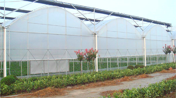 4、采用吸湿性良好的保温幕材料。透湿和吸湿性良好的保温幕材料,如无纺布能够阻止棚内表面结露,并可防止露水落到植株上,从而降低连栋温室空气湿度。