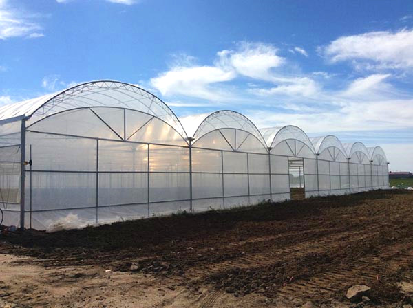 4、采用吸湿性良好的保温幕材料。透湿和吸湿性良好的保温幕材料,如无纺布能够阻止棚内表面结露,并可防止露水落到植株上,从而降低连栋温室空气湿度。