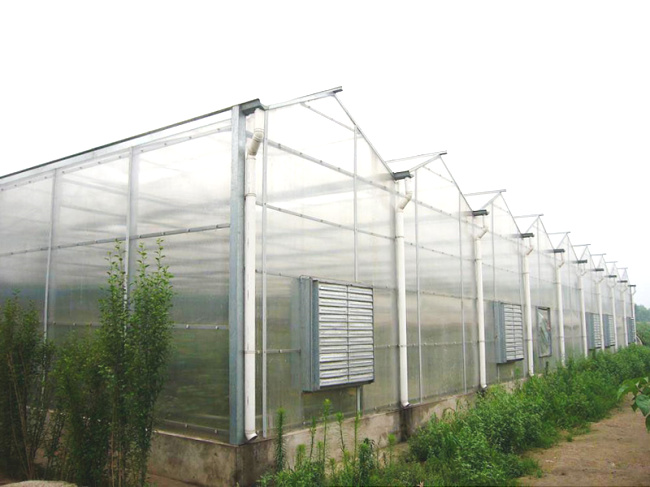 阳光板温室多为文洛型(也可以采用圆拱形),多采用一跨多顶,外形现代,结构稳定,形式美观大方,视觉流畅,保温性能卓越,透光率适中,多雨槽,大跨度,排水量大,抗风能力强,适合于风力与雨量较大地区。阳光板温室,具有透光度好,热传导系数低,由于阳光板分量轻,寿命长,拉伸强度大,通过简单的钢骨结构就能满足抗风、抗雪的要求,并且寿命长,美观大方,减少重复建设及投资,是替代原始的塑料薄膜温室与玻璃温室的首选产品。