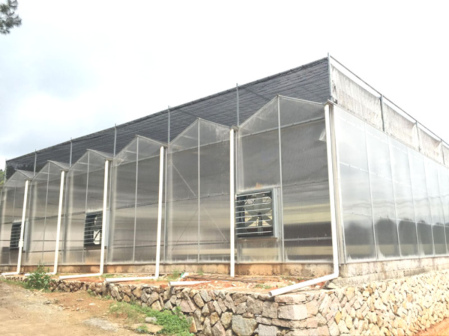 阳光板温室多为文洛型(也可以采用圆拱形),多采用一跨多顶,外形现代,结构稳定,形式美观大方,视觉流畅,保温性能卓越,透光率适中,多雨槽,大跨度,排水量大,抗风能力强,适合于风力与雨量较大地区。阳光板温室,具有透光度好,热传导系数低,由于阳光板分量轻,寿命长,拉伸强度大,通过简单的钢骨结构就能满足抗风、抗雪的要求,并且寿命长,美观大方,减少重复建设及投资,是替代原始的塑料薄膜温室与玻璃温室的首选产品。